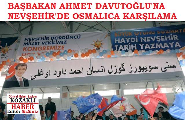 Başbakan Ahmet Davutoğlu Nevşehir'de partisinin il kongresinde konuştu. Kongre salonuna asılan Osmanlıca pankart dikkat çekti.